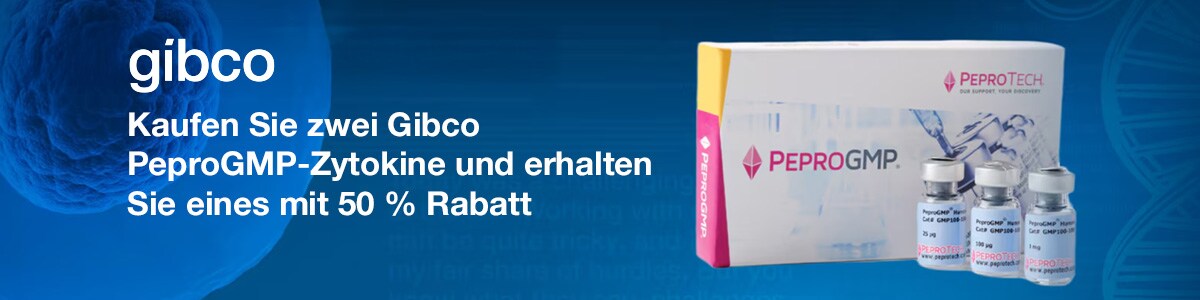 Verpassen Sie nicht die Gelegenheit, zu sparen und gleichzeitig von der Zuverlässigkeit, Qualität und Konsistenz der Gibco PeproGMP-Zytokine zu profitieren.