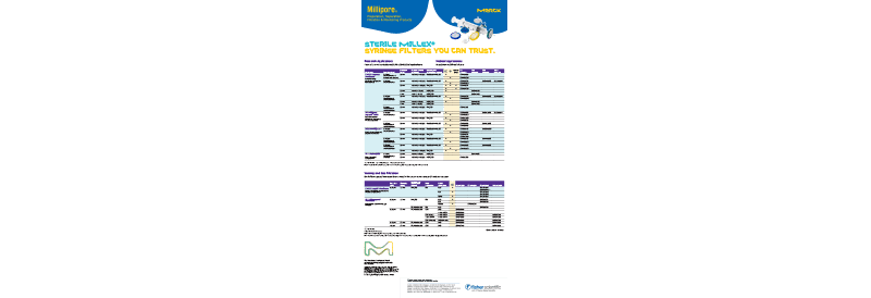 Designet til sterilisering og klaring af sterile opløsninger. Millex™ Sterile sprøjtefiltre: MCE Membrane er brugsklare, sprøjtedrevne enheder, der aldrig er blevet rørt af menneskehænder under filtersamlingen. Har 0,22, 0,45 og μ0,80 m porestørrelser; medicinske filtre tilgængelige.