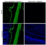 Description: The monoclonal antibody 1A4 recognizes human, mouse, and rat alpha-smooth muscle actin. Alpha-smooth muscle actin is a 42 kDa protein and is a major component of the cytoskeletal structural network. This 1A4 antibody is specific for the alpha form of muscle actin only, which is expressed by smooth muscle cells of blood vessels, myofibroblasts, and myoepithelial cells. It is also expressed in the parenchyma and stroma of various tissues. Alpha-smooth muscle actin is useful in the identification of leiomyomas, leiomycosarcomas and pleomorphic adenomas and is used as a prognostic marker for basal cell carcinoma. Applications Reported: This 1A4 antibody has been reported for use in immunohistochemical staining of formalin-fixed paraffin embedded tissue sections, and immunocytochemistry. Applications Tested: This 1A4 antibody has been tested by immunohistochemistry of formalin-fixed paraffin embedded tissue using low pH antigen retrieval and can be used at less than or equal to 1 μg/mL. This 1A4 antibody has been tested by immunocytochemistry of methanol-fixed cells and can be used at less than or equal to 1 μg/mL. It is recommended that the antibody be carefully titrated for optimal performance in the assay of interest. Excitation: 488 nm; Emission: 519 nm; Laser: Blue Laser. Filtration: 0.2 μm post-manufacturing filtered.